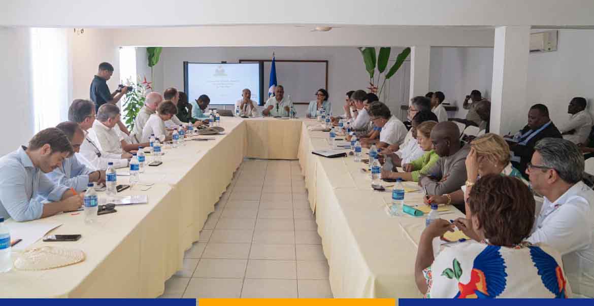 Jedi 22 dawout 2024, Premye Minis Doktè Garry Conille ansanm ak plizyè manm nan Gouvènman an te reyini nan vil Okap, depatman Nò peyi a. Anba prezans plizyè anbasadè, tankou sa Etazini, Kanada, Lafrans, Espay, Meksik, Chili, ak Swis, ansanm ak reprezantan Nasyonzini ak Inyon Ewopeyèn, yo te prezante estrateji ak pwogram Gouvènman an ap mete sou pye pandan peryòd tranzisyon an.