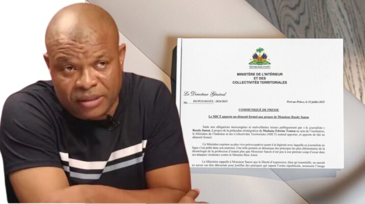 Le Ministère de l’Intérieur et des Collectivités Territoriales (MICT) a publié ce vendredi un communiqué cinglant en réaction aux déclarations publiques du journaliste Roody Thomas Sanon. Ce dernier avait affirmé que Mme Edwine Tonton aurait été réintégrée dans l’administration publique, et qu’elle aurait perçu des arriérés de salaire durant sa période d’incarcération.