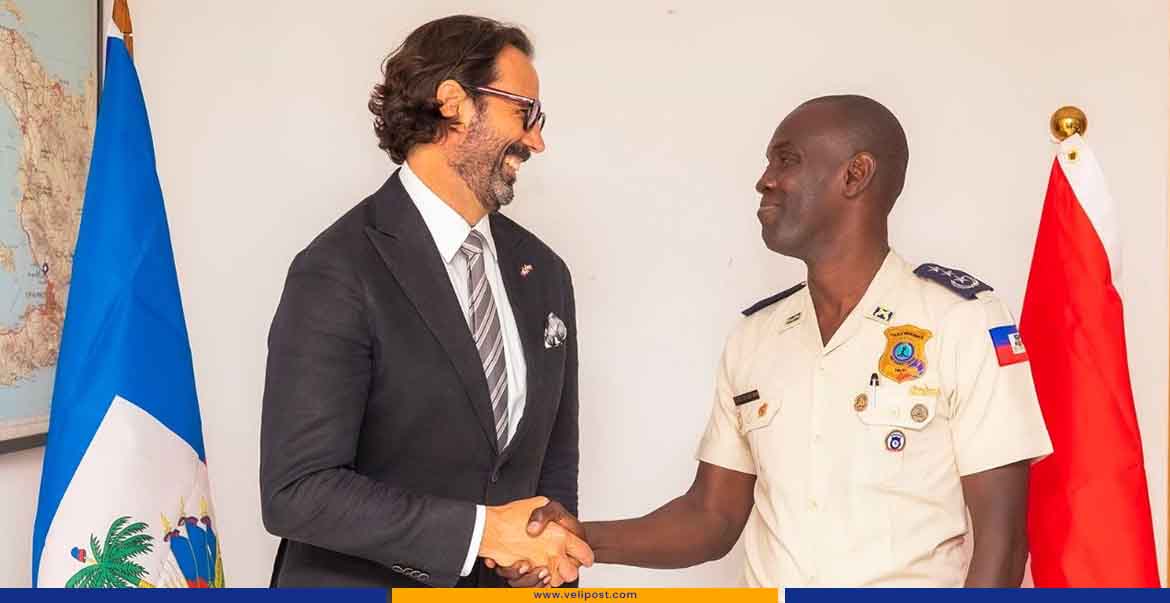 Le lundi 11 août 2025, le Directeur Général par intérim de la Police Nationale d’Haïti (PNH), M. André Jonas Vladimir Paraison, a reçu la visite de courtoisie de M. André François Giroux, Ambassadeur du Canada accrédité en Haïti. Cette rencontre s’est tenue au bureau du Commandant en chef, situé à Clercine 8, dans la commune de Tabarre.