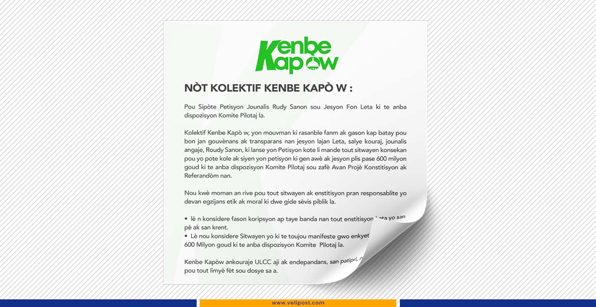 Kenbe Kapò W conclut en exhortant les citoyens à signer massivement la pétition afin que « la lumière jaillisse » sur la gestion de ces fonds publics.