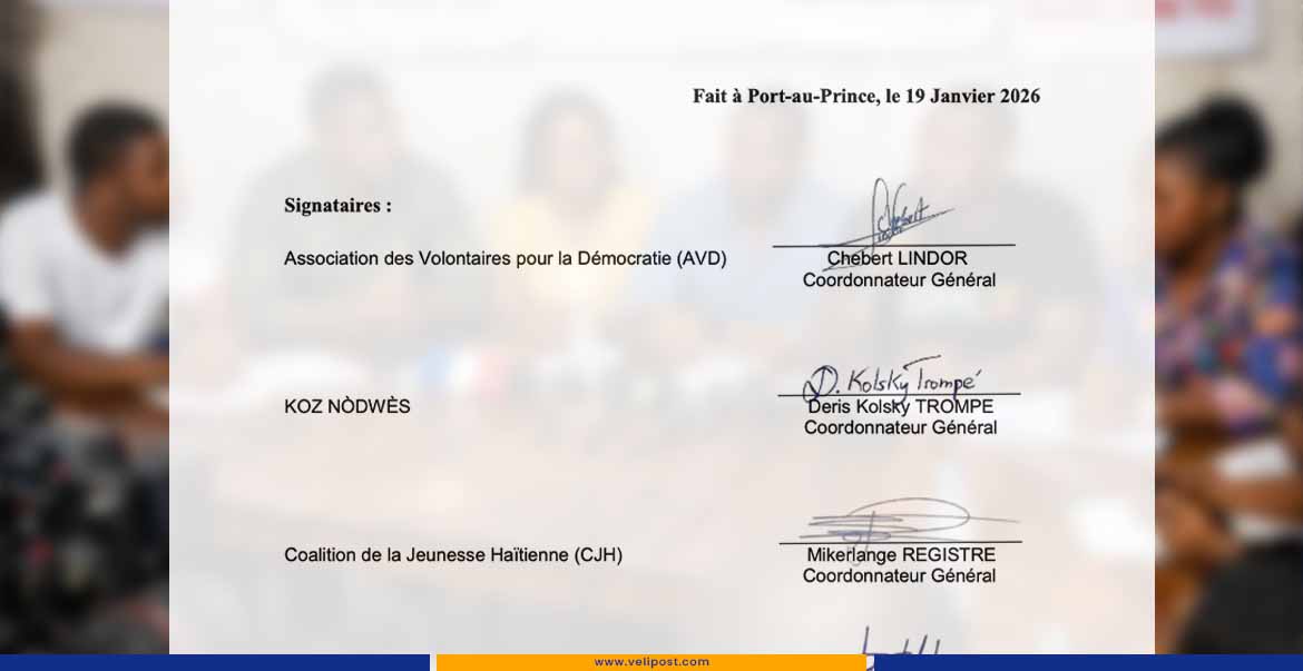 Parmi les organisations engagées figurent l’Association des Volontaires pour la Démocratie (AVD), KOZ NÒDWÈS, la Coalition de la Jeunesse Haïtienne (CJH), Ayiti Gen Moun et KOZE JÈN YO, chacune représentée par son coordonnateur général. Les responsables promettent d’informer le public des prochaines étapes de ce processus de concertation dans les jours à venir.