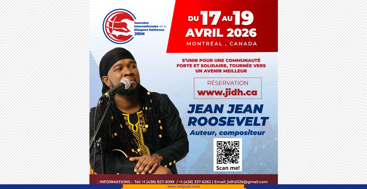 Les Journées Internationales de la Diaspora Haïtienne (JIDH) ont annoncé la nomination de l’artiste haïtien de renommée internationale Jean Jean Roosevelt en tant qu’Ambassadeur et Porte-parole officiel de leur 8ᵉ édition, prévue du 17 au 19 avril 2026 au Centre Congrès La Renaissance, à Montréal. Placée sous le thème « S’unir pour une communauté forte et solidaire, tournée vers un avenir meilleur », cette nouvelle édition entend rassembler les forces vives de la diaspora autour d’une vision commune axée sur le développement et la coopération.